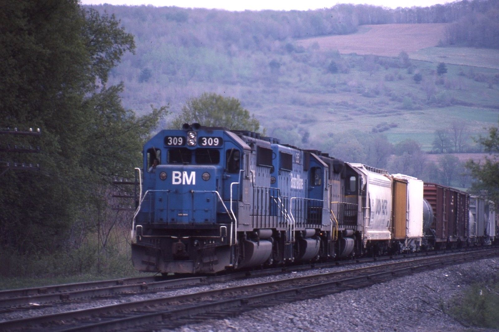 Title (ebay affiliate link): ORIGINAL KODACHROME BOSTON & MAINE GP 40 # 309 ACTION NINEVEH, NY 1983