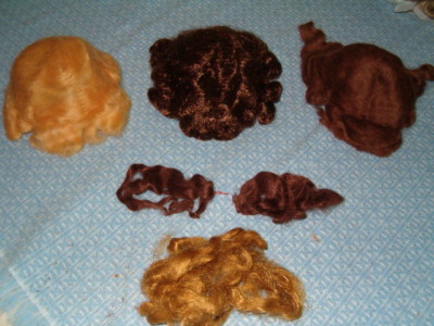 A NICE SELECTION OF ANTIQUE DOLL WIGS