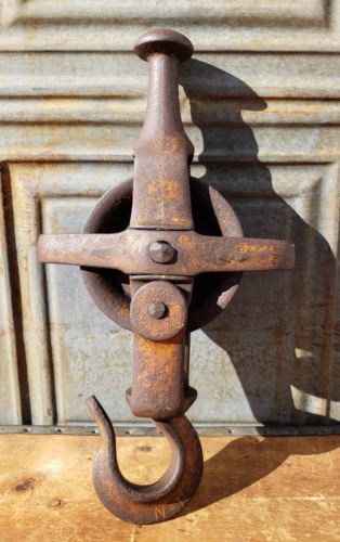 Title (ebay affiliate link): Antique Cast Iron Drop Pulley Hay Trolley Farm Tool Barn Salvage Vtg Industrial