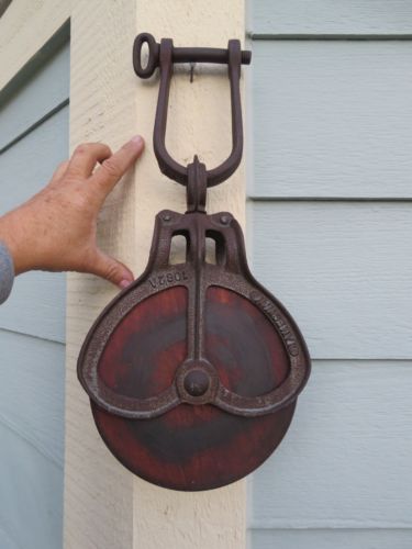 Title (ebay affiliate link): Antique Vintage JAMESWAY Cast Iron Wooden BARN PULLEY No.1062A Old Farm Tool
