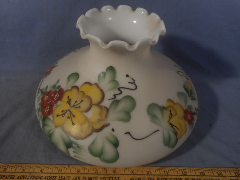 Title (ebay affiliate link): 10" Fitter Lamp Shade Floral Design Hand Painted Vintage Milk Glass Crimped Top