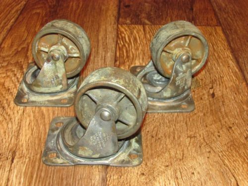 Lot Of 3 Vintage Bassick 261 Cast Iron Industrial Wheels, Still Useable,
