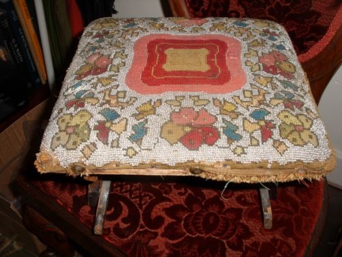 Title (ebay affiliate link): Antique primitive glass beaded footstool unusual geometric design
