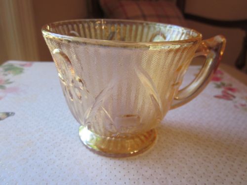Title (ebay affiliate link): Vintage Depression Glass Iris & Herringbone Amber Cup