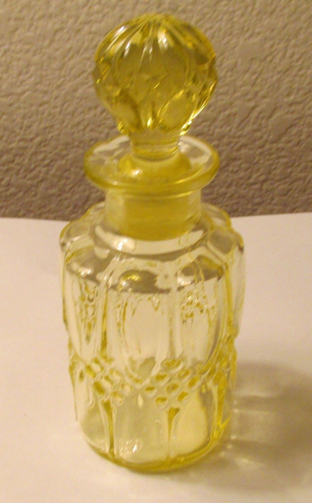 Title (ebay affiliate link): Val St. Lambert Vaseline Glass Perfume Bottle Garniture de Toilette 1935