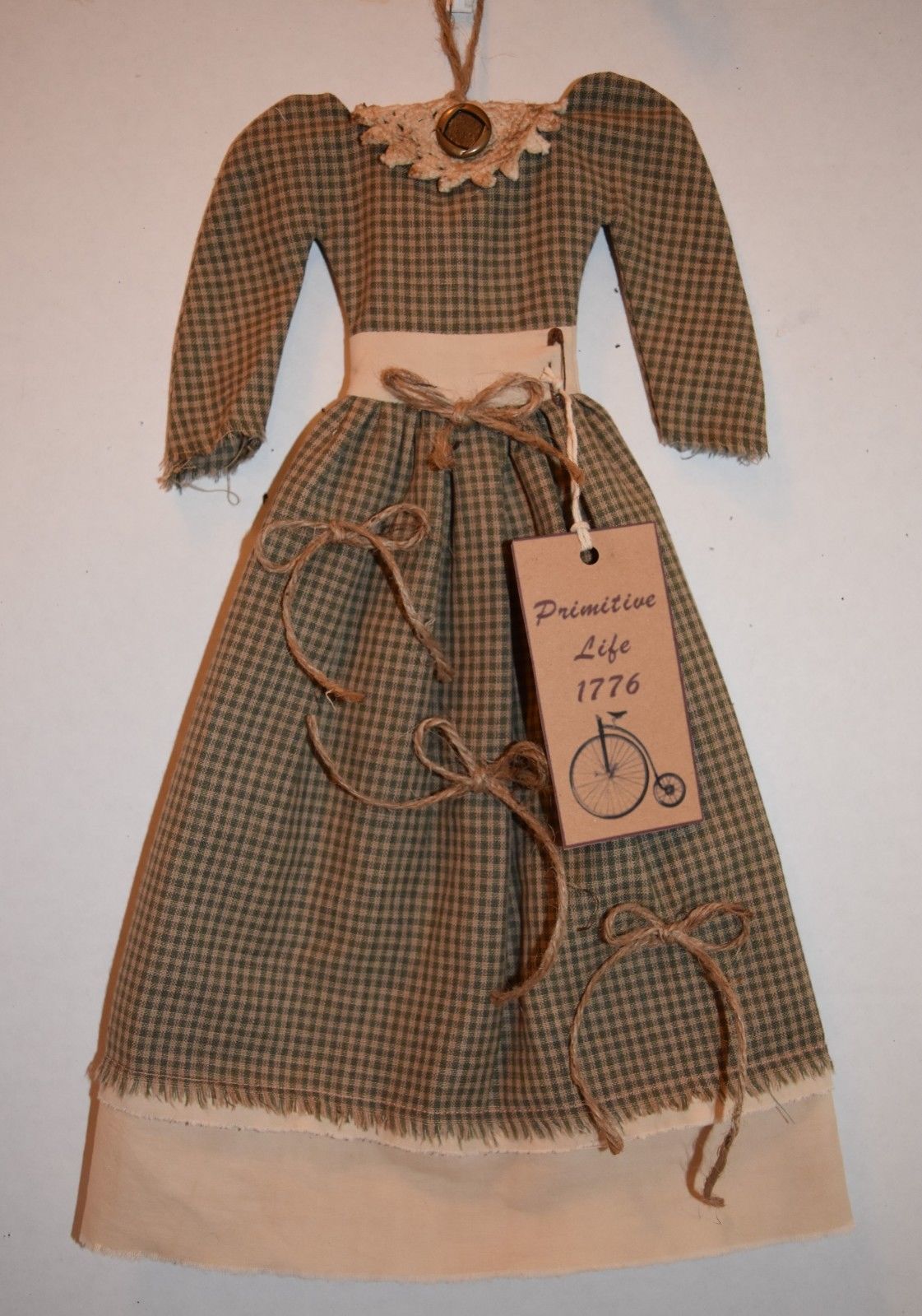 Title (ebay affiliate link): GRUNGY ORANGE PRIM PRAIRIE AMERICANA HOMESPUN FOLK ART DECOR DOLL WALL DRESS