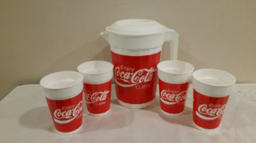 Title (ebay affiliate link): Coca Cola Pitcher and Glasses Plastic 5pc Set