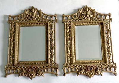 ANTIQUE MIRROR PAIR PICTURE FRAME c 1890 GILT CAST IRON CHERUB BEVELLED GLASS