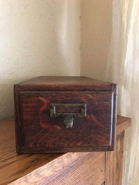 Title (ebay affiliate link): Vintage Wood Card Catalog Library Box Filing Index Drawer DOVE Tailed