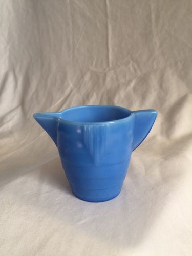 Vintage Depression Glass Akro Agate Stacked Disc Child''s Blue Water Pitcher