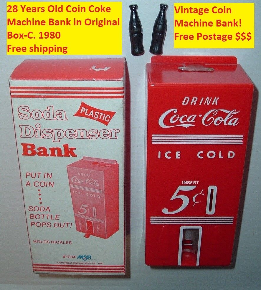 Title (ebay affiliate link): Coca Cola Vintage Coke Soda Pop Coin Operated Coke machine Bank MINT in Box
