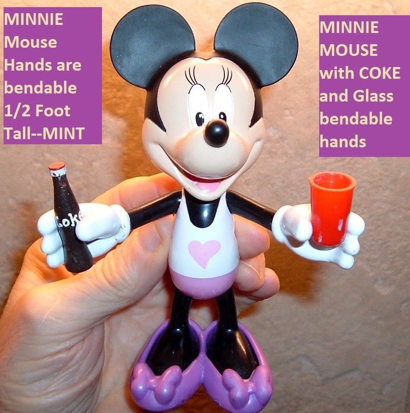 Title (ebay affiliate link): MINNIE MOUSE 1/2 FOOT Tall with Coca Cola Coke and Red Glass Bendable Hands MINT