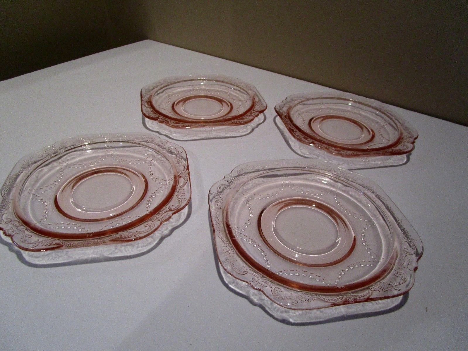 Vintage Pink Depression Glass Plates ~ Set of 4 plates