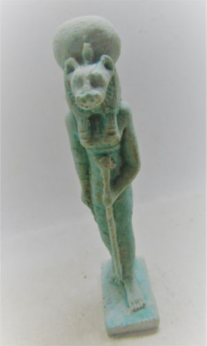 Title (ebay affiliate link): SCARCE ANCIENT EGYPTIAN GLAZED FAIENCE STATUETTE OF SEHKMET BEAUTIFUL PIECE