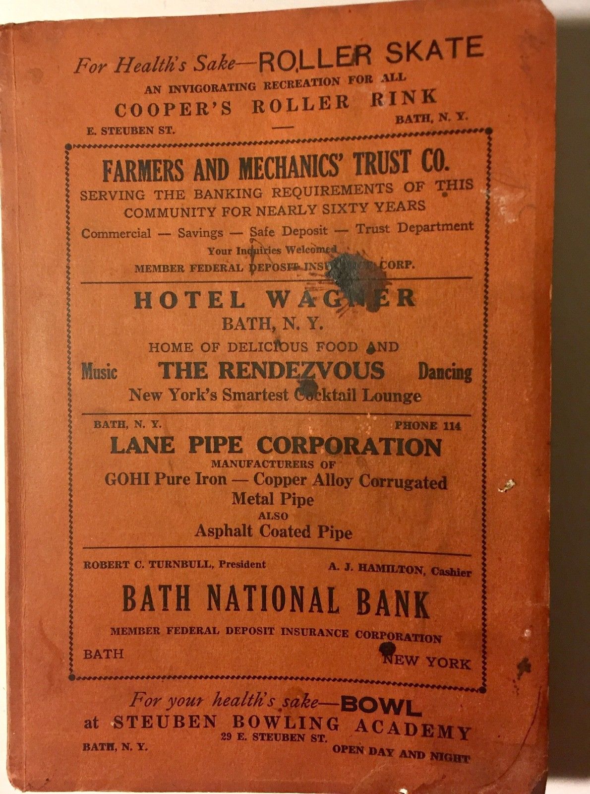 VINTAGE 1940 ~ BATH NY and HAMMONDSPORT NY CITY DIRECTORY
