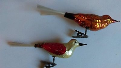Antique German CHRISTMAS silver glass ornaments 2 BIRDS
