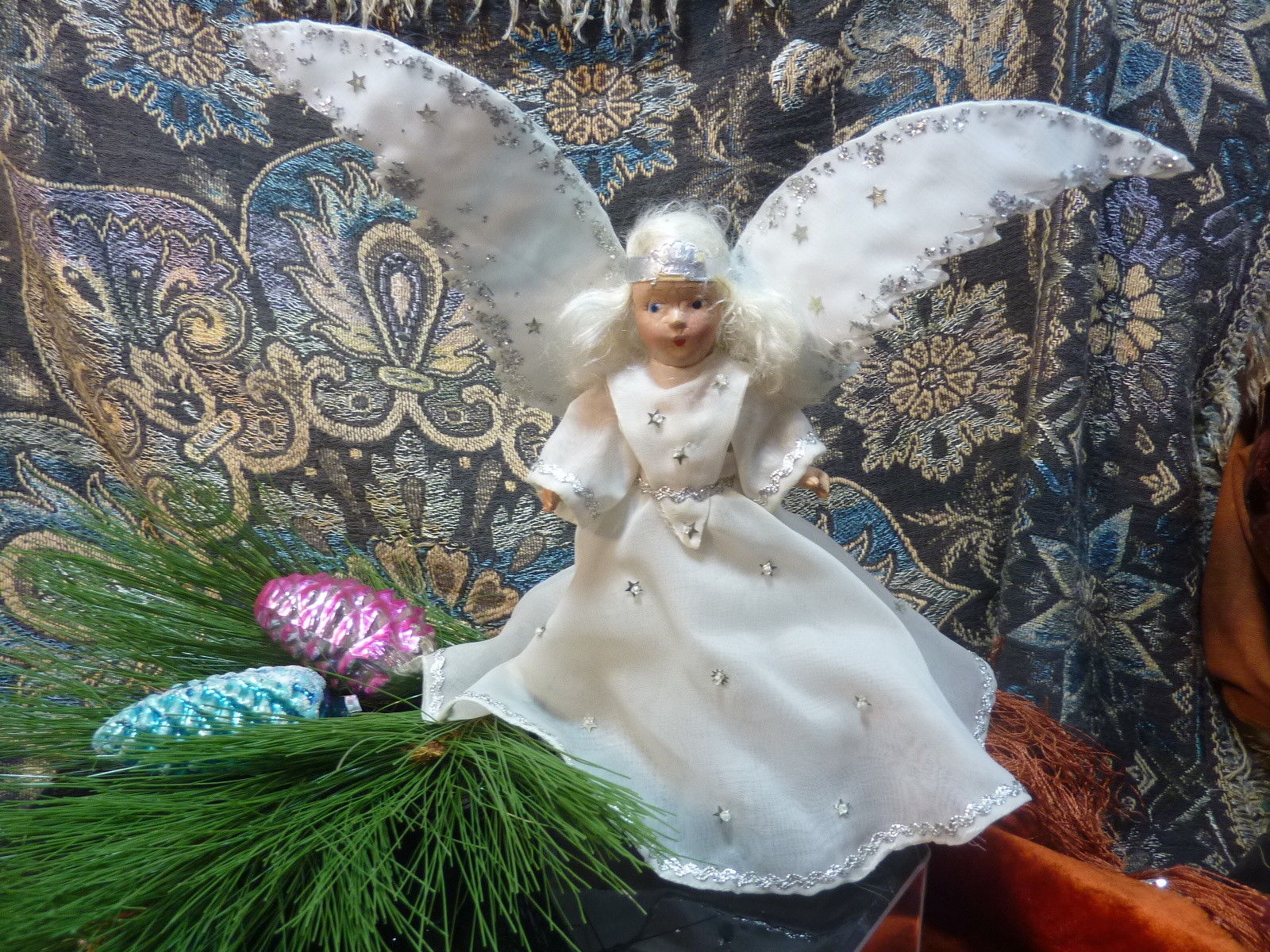 vintage christmas TREE ANGEL BISQUE DOLL TREE TOPPER 1930''S -40''S 10 INCH
