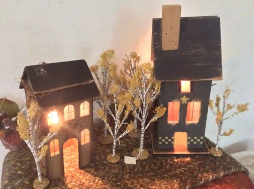 Title (ebay affiliate link): Primitive LIGHTED HOUSES W/CHIMNEY & STAR Saltbox Country Farmhouse Rustic Wood/
