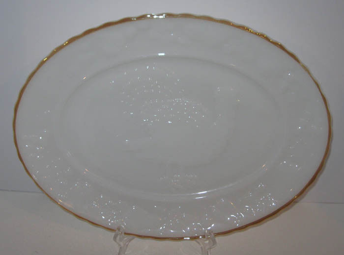 Anchor Hocking Vintage Milk Glass Large Turkey Platter Opaque White w/Gold Trim