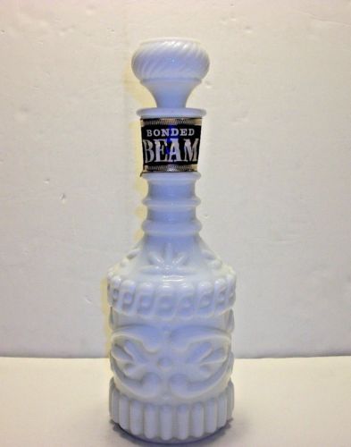 Title (ebay affiliate link): Vintage Bonded Jim Beam Bourbon Whiskey White Milk Glass EMPTY Bottle Decanter