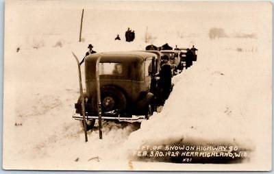 Highland, Wisconsin RPPC Photo Postcard "15 Ft of Snow Highway 80 - Feb 3, 1929"