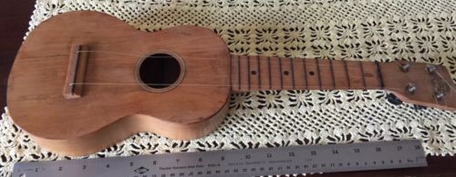 Title (ebay affiliate link): VINTAGE WOOD & METAL TOY GUITAR 4 STRING 20" Marked Pavilla
