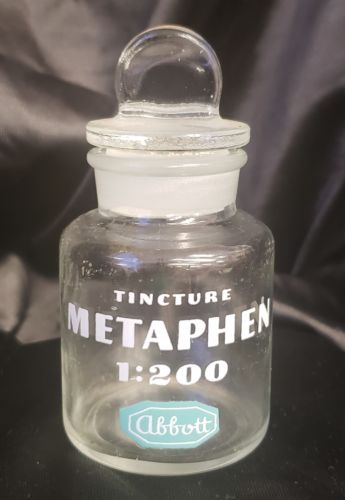 Title (ebay affiliate link): Vintage Apothecary Jar Abbott Tincture Metaphen. With lid.