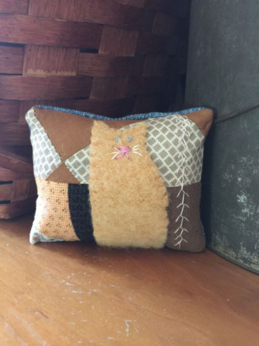 Title (ebay affiliate link): Primitive Stitchery Kitty Cat On A Quilt Ornie Little Pillow Bowl Filler