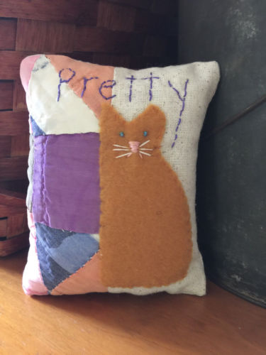 Title (ebay affiliate link): Primitive Stitchery Kitty Cat On A Quilt Ornie Bowl Filler Shelf Tuck