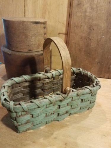 Title (ebay affiliate link): ANTIQUE STYLE OLD PRIMITIVE TYPE WOOD SPLINT SWING HANDLED GREEN PAINTED BASKET