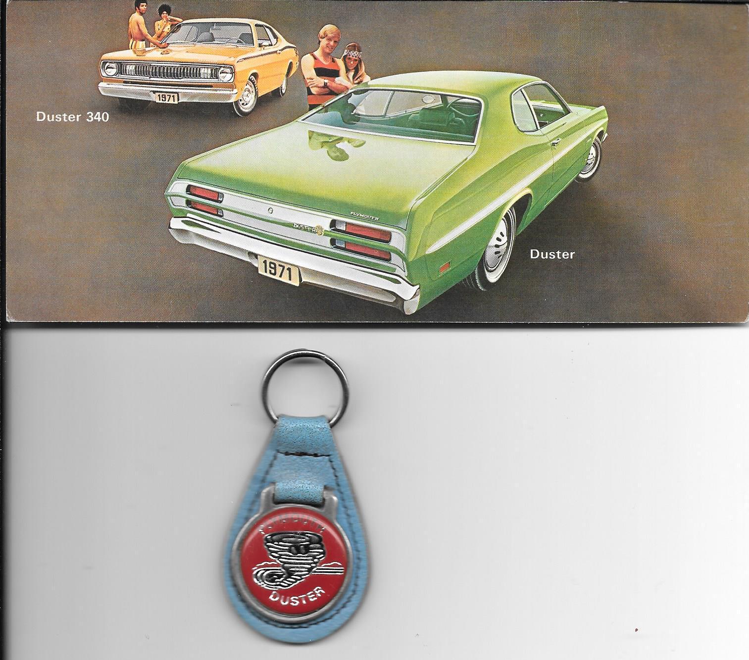 1971 PLYMOUTH DUSTER Advertising POST CARD + Vintage Duster KEY CHAIN-Nice!