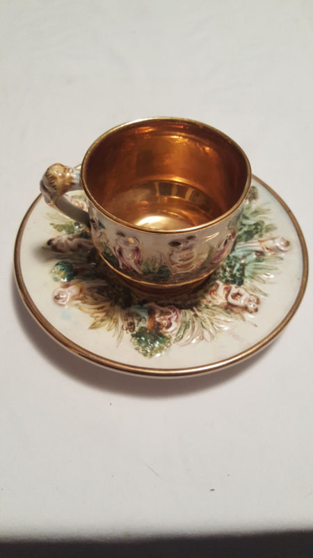 Title (ebay affiliate link): R. Capodimonte M.A.S. Italian Teacup and Saucer Gold High Relief Ceramic
