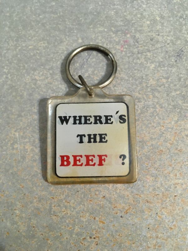 Title (ebay affiliate link): Vintage "Where''s the Beef?" Double Sided Keychain -- Wendy''s Fast Food Slogan