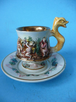 Antique Capodimonte Dragon Handle Cup & Saucer