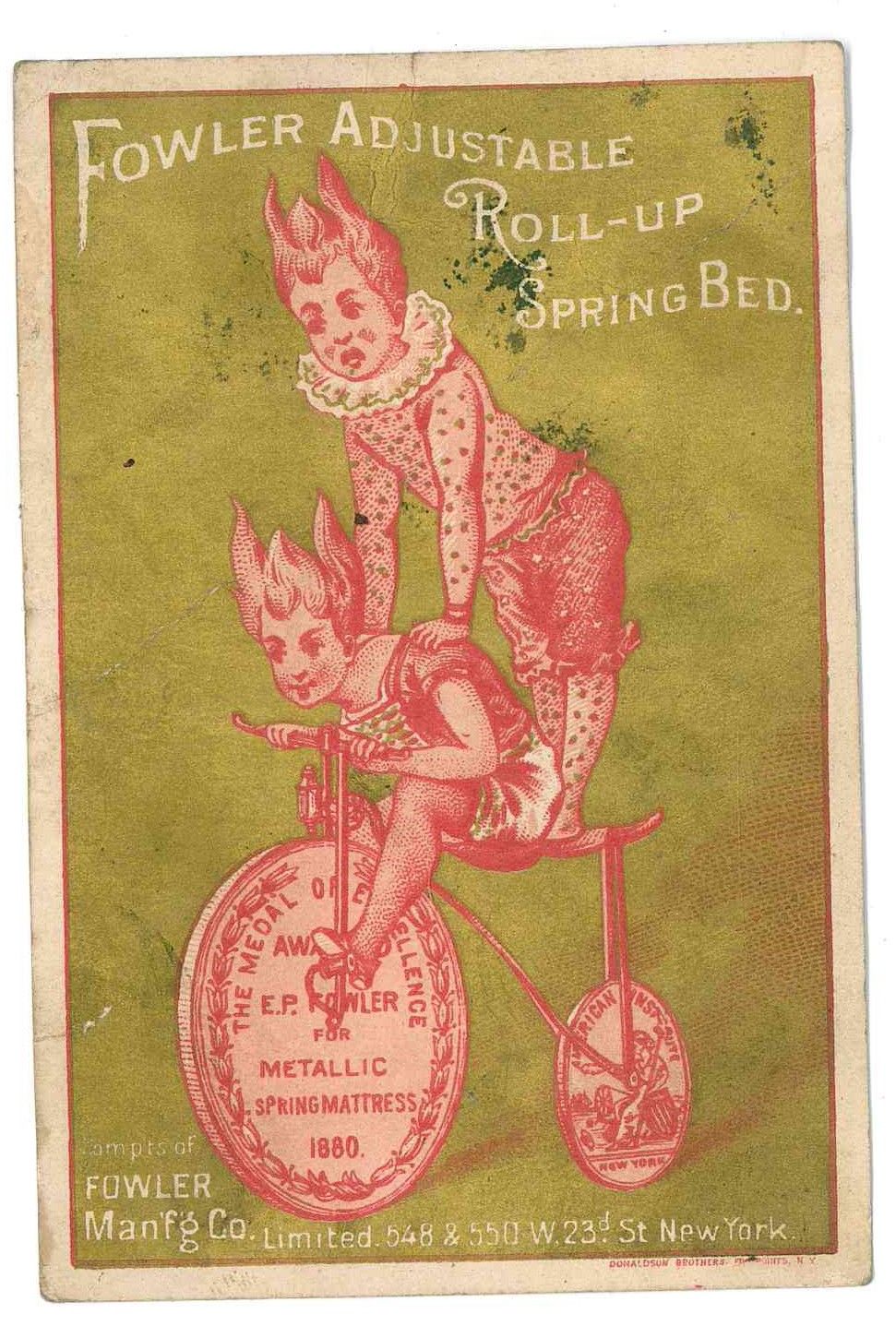 1880s trade card Fowler spring beds Harrisburg Dauphin co PA branch office