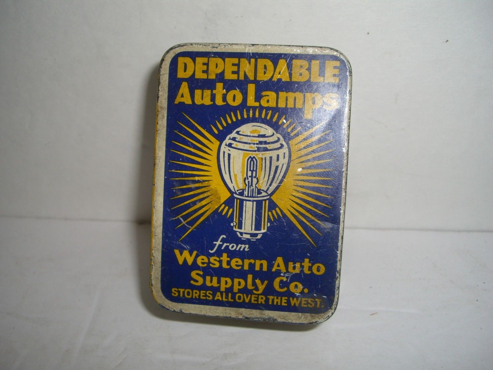 WESTERN AUTO DEPENDABLE AUTO LAMPS CAR LIGHT BULB TIN
