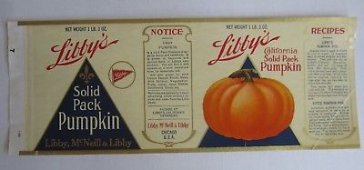 Title (ebay affiliate link): Old Vintage 1929 - LIBBY''S - California PUMPKIN - Can LABEL - Chicago Ill.