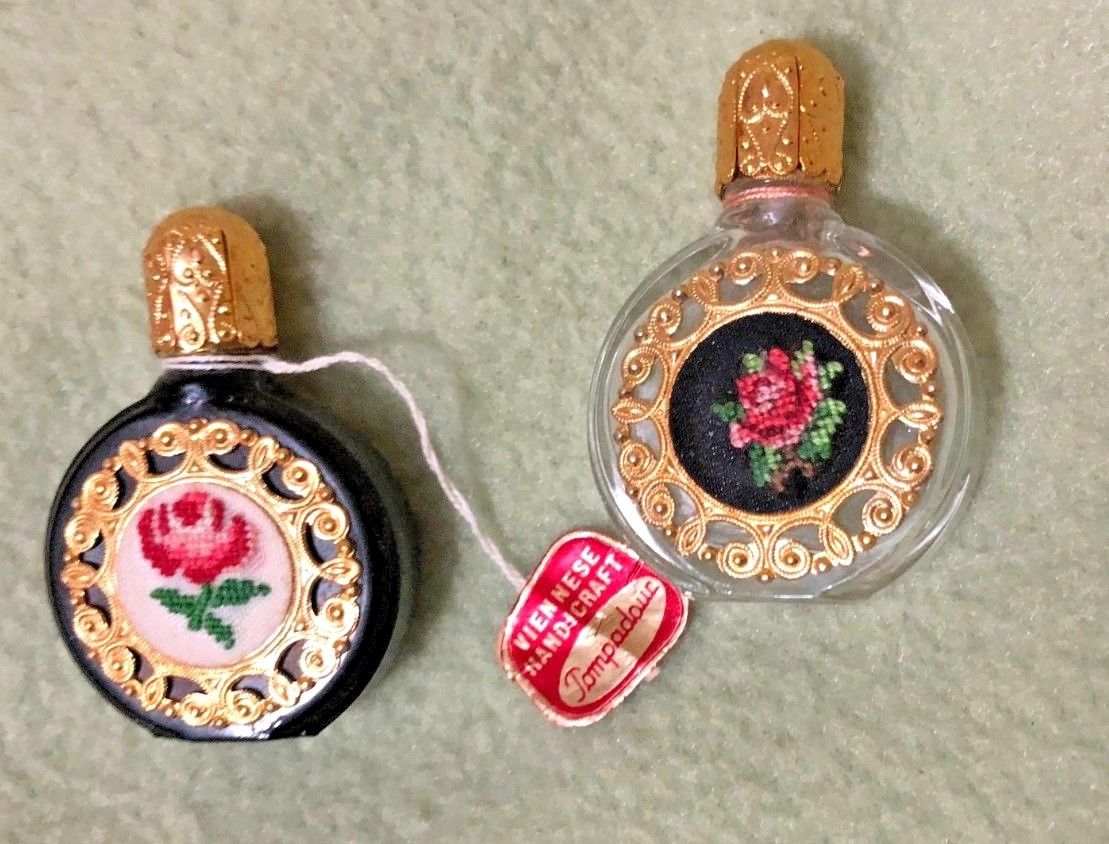 Vintage Viennese Miniature Perfume Bottles (x2), with ROSE cross stitching
