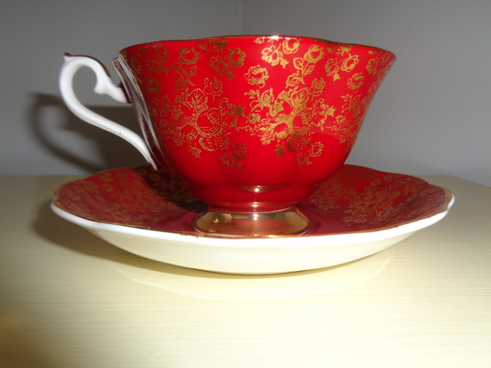 ROYAL ALBERT STUNNING RED AND GOLD TEACUP AND SAUCER