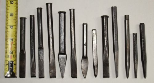 Title (ebay affiliate link): Vintage lot of 13 Small Cold Chisels Machinist Mechanic Steel Blacksmith
