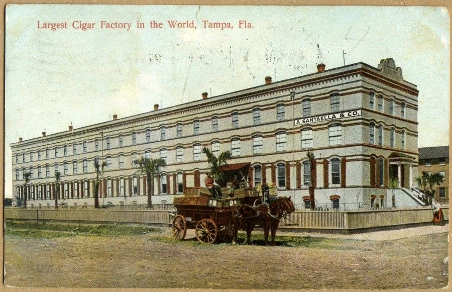 Santaella Cigar Factory, Tampa ~ Postcard dated 1909