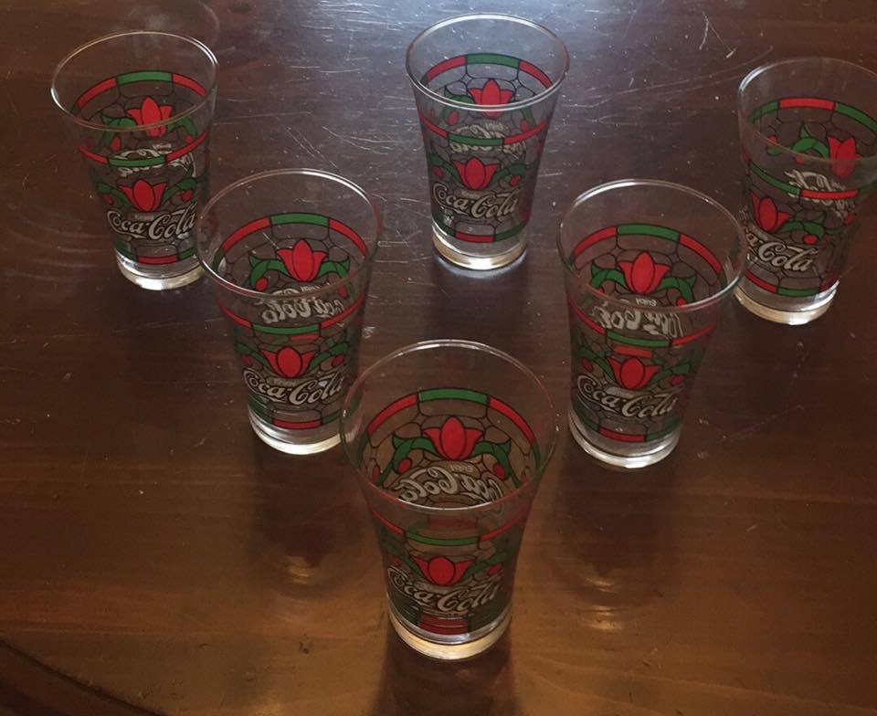 Title (ebay affiliate link): Vintage Coca-Cola Glasses Red & Green Stained glass Tulip design Set of 6