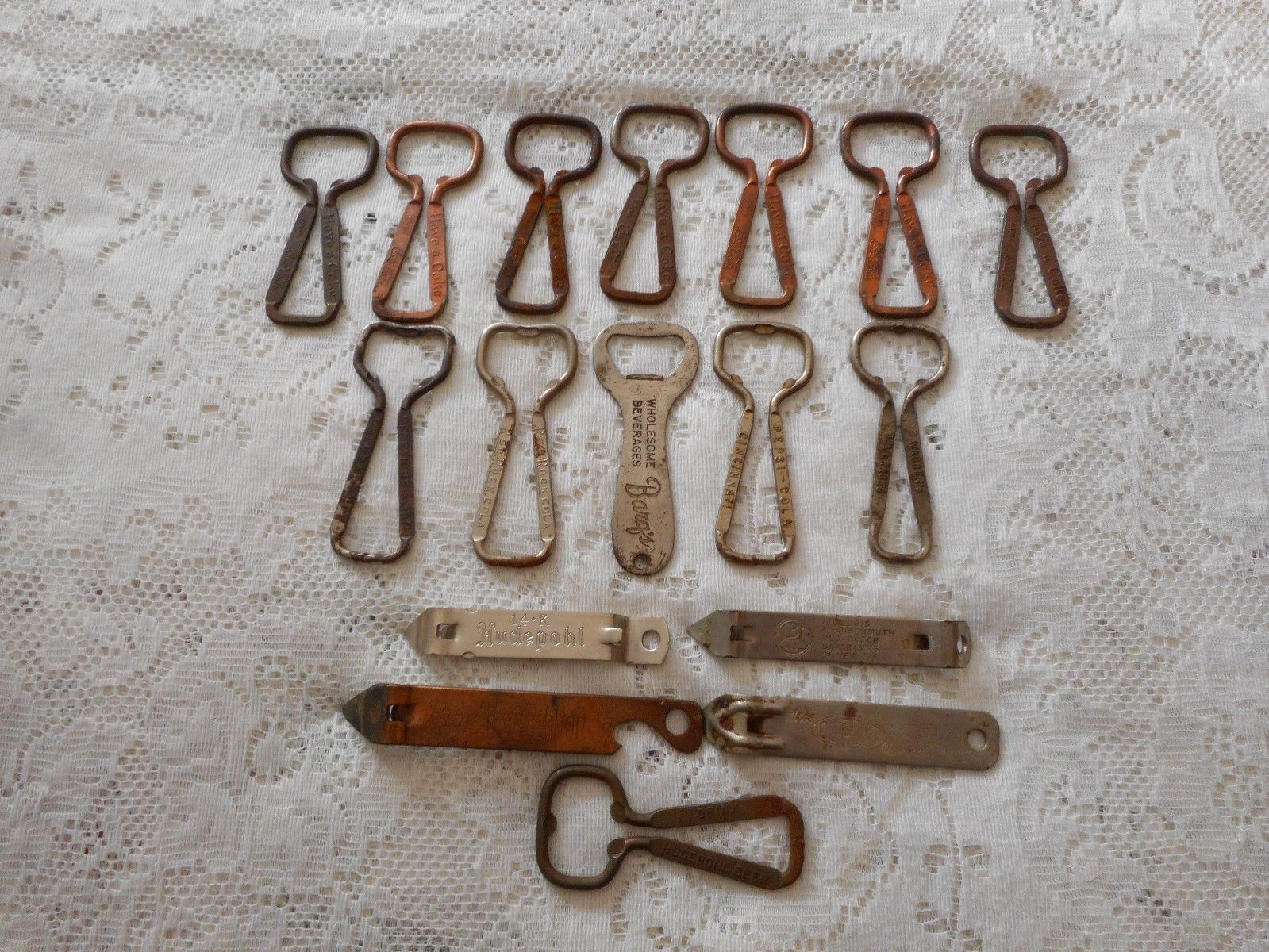Title (ebay affiliate link): Lot 17 Vintage Bottle Openers 7 COCA COLA 5 Soda 4 Beer 1 Dupont