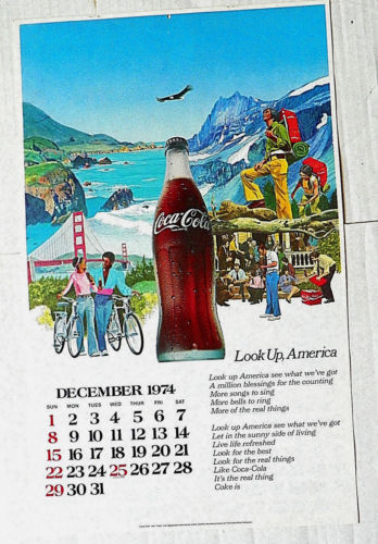1974 DEC - 5 DEC "ENJOY COCA-COLA" 13 MONTH CALENDAR ~ "LOOK UP, AMERICA"