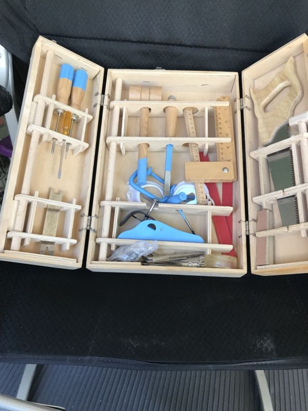 Title (ebay affiliate link): Childs Wooden Real Tools Set Box Kit Carpentry Poland