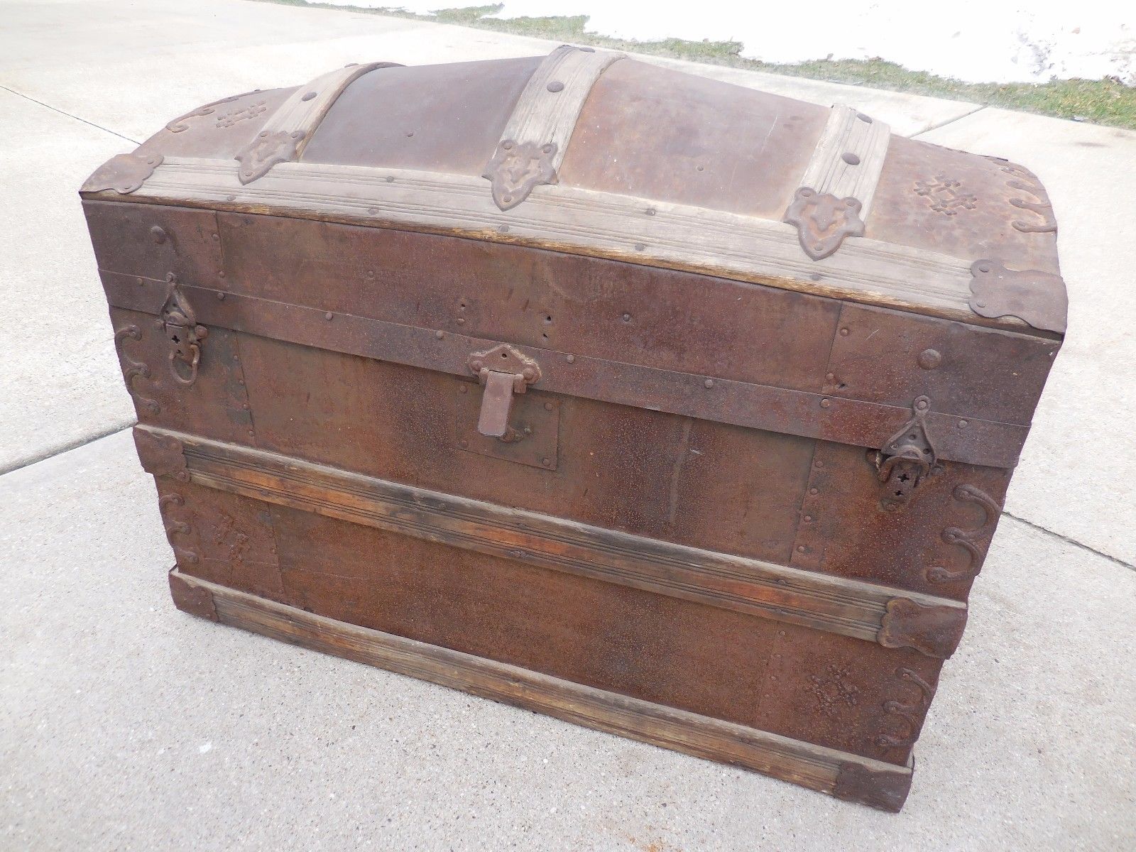 Antique Trunk, Pictures in wood lining, Rough & rust add to Charm