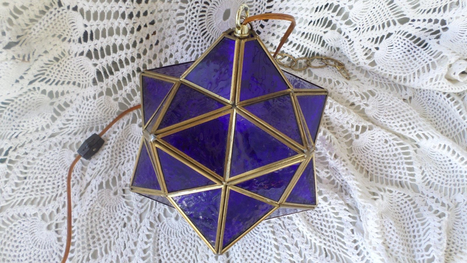 Title (ebay affiliate link): VTG BLUE STAR Swag Lamp Hanging Light MID-CENTURY MODERN leaded glass
