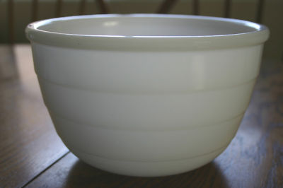 VINTAGE WHITE MILK GLASS mixing bowls Atlas fridge dish