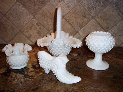 Fenton 4 piece White Hobnail Milk Glass Handmade