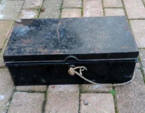 LOCKABLE METAL VINTAGE DEED BOX WITH KEY Cash Chest Safe Will Till